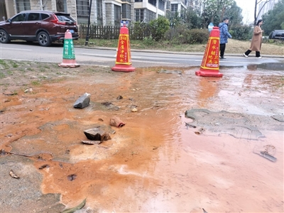 小区业委会负责人杨琴介绍,从去年至今,此处的自来水管道就开始破损,每次发现破损,相关部门都会派人前来维修,但是修了后没过多久又破了,直到维修了三次后,业主们认为:维修解决不了根本问题。于是,该处管道第四次破损时,小区拒绝相关部门维修,要求更换管道。
