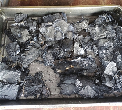 尽管办理过多起残损币兑换业务,但工作人员也是吸了一口凉气,只见铁盒里黑漆漆一堆灰,肉眼已无法识别。
