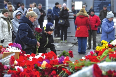 新华社电 24日是俄罗斯全国哀悼日,莫斯科阴雨绵绵,大量民众冒雨前往莫斯科近郊“克罗库斯城”音乐厅,悼念恐袭遇难者。