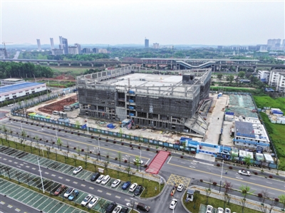 4月7日,空中俯瞰咸宁市全民健身中心,该项目正在加紧有序建设中。据了解,该项目位于咸宁高新区,紧邻咸宁市民之家,总投资2.9亿元。该项目将打造成集休闲、娱乐、健身于一体的体育综合体,更是一个覆盖老中青幼的全民健身场馆。项目预计今年8月建成投入使用。 (记者 毛亚轩)