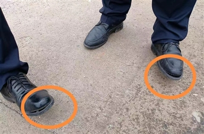 4月5日,咸宁市城市管理综合执法三支队执法队员熊波和徐瑾巡查过程中,也出现了鞋底脱落的情况。