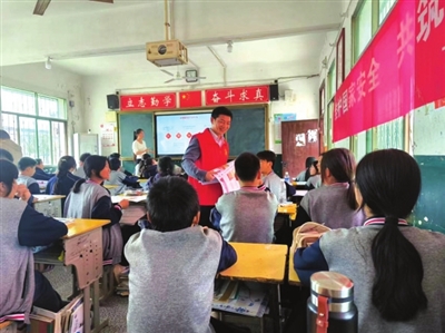 恰逢第九个全民国家安全教育日来临之际,咸安区双溪桥镇政法办、派出所以及法庭工作人员一行到咸安区双溪初级中学开展“全民国家安全教育日”普法宣传活动。