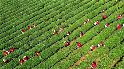 4月21日,咸安区汀泗桥镇黄荆塘村茶园,来自湖北科技学院第六期“青年马克思主义者”培养工程培训班学员正在基地里采茶。据了解,眼下正是采茶旺季,“青马班”学员走进茶园,帮助茶农抢采春茶,确保茶企增效、茶农增收。(记者 夏正锋 通讯员 朱华芮 柳杰 )