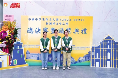 4月21日,第十九届中国中学生作文大赛总决赛暨颁奖典礼在澳门科技大学举行。本届大赛以“对话”为总主题,共吸引了来自全国21个赛区的105名中学生参与。经过总决赛笔试、口试、即兴演讲三大环节,最终角逐出20名“恒源祥文学之星”(初中、高中组各10名),20名“恒源祥文学之星提名奖”(初中、高中组各10名)及“最佳综合素质奖”“最具感染力奖”“最具表现力奖”“最佳思辨奖”“最具人气奖”5个单项奖。