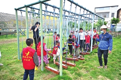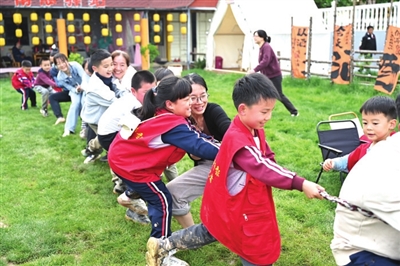 在休息之余,小记者们还体验了南瓜部落娱乐项目,在空旷的田野间,肆意奔跑、接力、攀爬、拔河,享受乐趣田园。“今天真是有趣的一天。”小记者李紫茉说,参加插秧活动很开心,体验了下田插秧,也认识了很多好朋友。