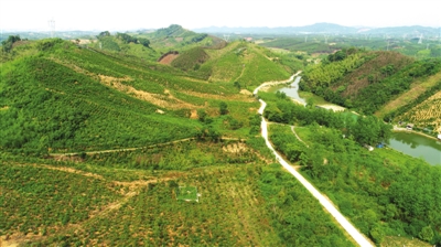5月21日,记者在咸安区汀泗桥镇彭碑村国土绿化试点示范项目现场看到,满山的树苗长势良好、翠绿一片,为整个山间增添了一抹新绿。