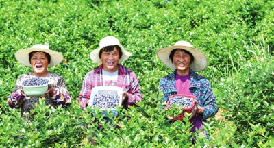 本报讯 (记者陈婧 通讯员雷平、马心如)小满时节,万物欣欣。嘉鱼县高铁岭镇九龙村连绵的丘陵缓坡上,湖北蓝之美农业科技开发有限公司的400亩蓝莓基地迎来丰收。社员们穿梭于蓝莓丛间采摘下一颗颗圆润饱满的果实,清风拂过,空气中飘着淡淡的果香,让人垂涎欲滴。