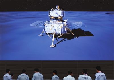 6月2日上午,国家航天局发布嫦娥六号月背着陆影像。上图为嫦娥六号着陆器和上升器组合体着陆月背的模拟动画画面。