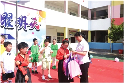 “少年智则国智,少年富则国富,少年强则国强,少年进步则国进步。”活动现场,“童伴妈妈”和孩子们共同朗诵《少年中国说》,送上“爱心书包”,“小可爱”们的脸上溢满了快乐和幸福的笑容。