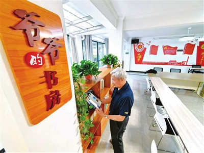 5月31日下午,记者走进御龙花园小区11栋楼的小区党群服务中心,两旁樟树郁郁葱葱,“爷爷的书房”就掩映在一片绿意中。