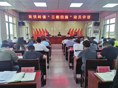 本报讯(记者 叶子 通讯员 王珂 叶堃)为进一步提升干部综合素质,培养能说、能写、能做,理论强、业务强、能力强、作风强的优秀干部,6月3日,高铁岭镇组织开展干部“三能四强”活动,近60名镇村干部参加动员仪式。