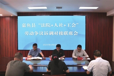 本报讯(通讯员 李佳恒)为进一步深化劳动争议纠纷诉源治理、践行新时代“枫桥经验”,充分发挥劳动争议仲裁前置程序的实质解纷作用,日前,嘉鱼县法院召开“法院+人社+工会”劳动争议诉调对接联席会,交流诉调对接工作情况,安排部署下一步工作。