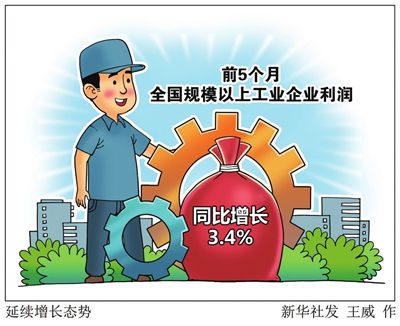 新华网消息 国家统计局27日发布数据显示,1至5月份,全国规模以上工业企业实现利润总额27543.8亿元,同比增长3.4%,延续年初以来的增长态势。