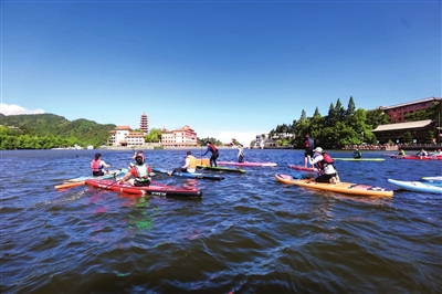 本报讯 (记者 陈婧) 云中湖畔,碧波荡漾,桨影翻飞。7月7日上午,2024湖北文旅第一届夏日桨板系列挑战赛在风景如画的云中湖激情开赛,来自五湖四海的300余名桨板爱好者汇聚一堂,共同开启了一场水上速度与激情的盛宴,也正式拉开了“九宫清凉,避暑天堂”九宫山避暑季的精彩序幕。