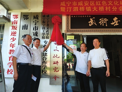 本报讯(记者陈志茹 实习生余鸿浩 通讯员刘玉霞) 8月23日,咸安区红色文化研究会挂牌暨汀泗桥镇大桥村分会授牌仪式在咸宁子龙文武学校隆重举行。该区红色文化研究会顾问、会员代表及第二届班子成员参加了该仪式。