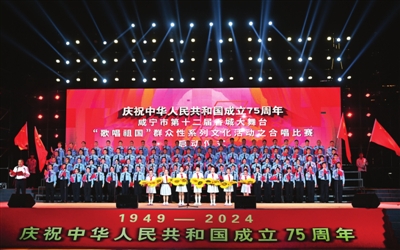 9月6日晚,为庆祝中华人民共和国成立75周年,咸宁市第十二届香城大舞台“歌唱祖国”群众性系列文化活动之合唱比赛在市人民广场启动。