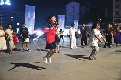 有吃有玩也有秀。小区里的文艺爱好者们聚集一起,轮番登场表演“才艺秀”,拍打舞、双人舞、红歌大合唱、黄梅戏……台上精彩纷呈,台下掌声不断。这一刻,咸宁人在属于自己的“星秀场”,展现最美的自己。