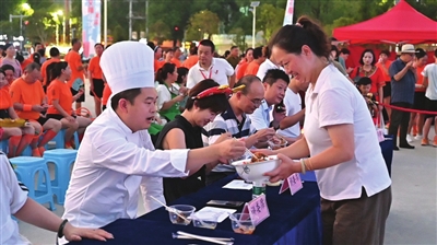 舞动咸宁、舌尖盛宴、文明实践、中秋团圆……9月14日18时许,伴随着一道道精美菜肴飘香上场,全市“文明新风尚 温馨邻里情”文明宣传进社区暨“社区文化节”第五场文明实践活动,在咸安区温泉街道滨河社区火热开启。