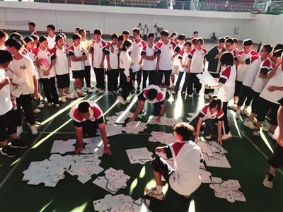 来自高一年级的22个班级参加了此次比赛。比赛共分三个环节,分别是“中国各省我来猜”“拼大地图”和“拼小地图”活动,分2个区同时进行,以完成比赛任务所花时间进行排名。