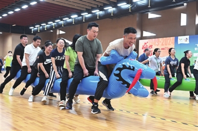 来自全市40支市直代表队共计619名职工参赛。赛事设有同舟共济、协同共进、花样跳绳、绕杆跑、拔河、摸石头过河等项目。比赛过程紧张激烈、妙趣横生,现场充满着欢乐积极的气氛。 (记者 赵忠志)