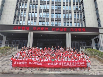 “我们国家有多少个民族”“你都了解哪些少数民族”……9月30日,咸宁实验外国语学校五年级100多名学生走进湖北科技学院美术馆参观,在欣赏美术作品之余,上了一堂“民族大团结”的主题教育课。