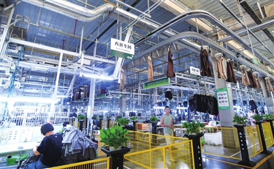 近日,壹嘉(湖北)科技制衣有限公司高档西服智能生产车间,一条条全智能吊挂系统高速运转,工人正有条不紊地作业。