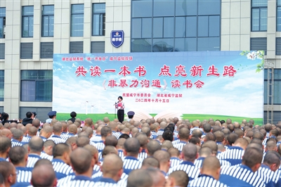 上午9时许,读书帮教现场,民盟咸宁市委和咸宁监狱联合开展共读《非暴力沟通》一书“黄丝带帮教”活动,从民警、职工、罪犯、亲属、名家5个层面进行读书分享,引导服刑人员减少与同改、与警官、与家人、与社会以及与自己的暴力沟通,帮助服刑人员决裂旧我、把握现在、奔向新生,赢得了现场2000多人的阵阵掌声。