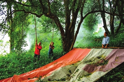 如果你想体验或观赏“打桂花”的活动,就一定要来桂花源。打桂花一定要赶早,有些打桂人趁着清晨太阳还未出来时,背着竹竿带着篷布,到树下打桂花,等到篷布上洒满了带着雨水和露珠的新鲜桂花时,他们摘去打下来的桂花叶,留下的桂花就被送到集市上出售。