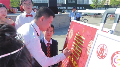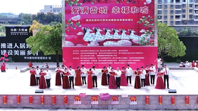 今年10月,12对新人穿着喜庆的礼服缓缓走过横沟桥东站广场的集体婚礼现场,以简约朴素的礼仪,喜事新办的方式,为新的生活掀开精彩一页;