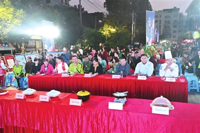 太极鳕鱼羹、扁尖煲老鸭、凤梨咕咾肉、鲍鱼参鸡汤、桂花大盘鸡、霸王别姬……当晚6时许,10道由社区居民精心烹饪的拿手好菜引来现场观众的阵阵惊呼声。每道菜不仅颜值高,且造型独特。品尝菜肴、交流厨艺后,现场评委根据菜品创意度、美观程度、口感、营养价值等进行打分。社区居民吴金龙以一道“霸王别姬”让评委们惊艳不已,成为当天的“美食达人”。
