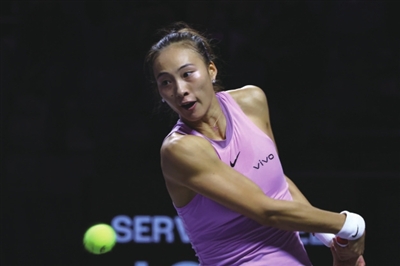 本报综合消息 4日在沙特阿拉伯利雅得进行的女子网球选手协会(WTA)年终总决赛单打小组赛紫组次轮较量中,中国“一姐”郑钦文苦战三盘力克哈萨克斯坦选手莱巴金娜,收获年终总决赛的首场胜利。