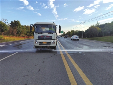 同时,强化养护管理,结合路域环境专项整治行动,及时清理路肩白色垃圾、清扫路面抛洒物、清除排水沟和涵洞等隐蔽部位淤泥,定期修剪遮挡交通标志标牌的行道树,及时修复交通安全设施,快速修补路面坑槽,全力提升公路通行环境,从源头上抑制扬尘污染源。