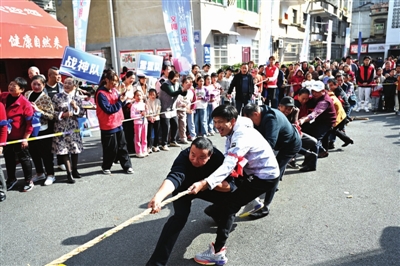 趣味运动会上,拔河比赛成为全场瞩目的焦点。6支参赛队伍由社区居民自发组成,他们个个摩拳擦掌,跃跃欲试。随着裁判的一声哨响,比赛正式开始。双方队员紧握绳子,脚蹬着地,身体后倾,全力以赴。现场气氛紧张而热烈,观众的加油声和呐喊声此起彼伏,经过一番激烈的角逐,来自“火箭队”的10名选手凭借出色的团队协作和顽强拼搏精神,最终赢得了比赛的胜利。
