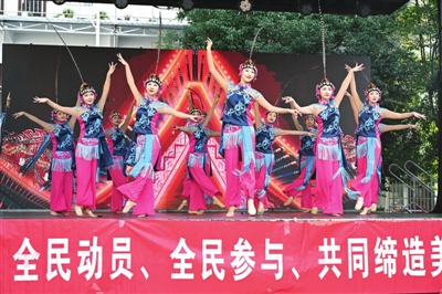 “社区才艺秀”表演则是一场视觉与听觉的盛宴。由社区居民自编自导的9个精彩节目轮番上演。舞蹈、丝巾秀、非洲鼓、武术等这些节目都带着浓浓的本土味,融合着居民满满的幸福感。居民们在台上互相切磋技艺,精彩纷呈的节目展现了社区居民蓬勃奋发的精神面貌和熠熠风采。