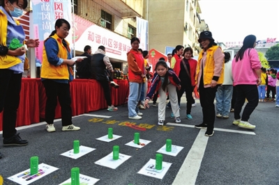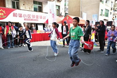 “文明集市”服务群众“零距离”。这里有充满传统文化韵味的手工艺品展示,每一件作品都凝聚着手艺人的心血和智慧,不仅丰富了社区居民的生活,也促进了社区的文化交流和凝聚力。咸宁职业技术学院商学院20名志愿者在现场协助社区工作人员提供服务,以实际行动弘扬传统文化,打造文明社区。现场通过展板、宣传折页和有奖趣味问答等环节学习宣传《咸宁市文明行为促进条例》。居民或围坐在普法宣传展位,倾听《中华人民共和国爱国主义教育法》,写下对祖国的美好祝福;或在垃圾分类体验区玩起互动小游戏,学习了解我市自2024年5月1日起施行的《咸宁市城市生活垃圾分类管理办法》……