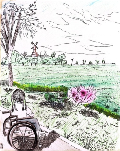 今年11岁的易诺,是通城县五里镇中心小学的一名小学生。六岁时的她一次意外受伤,导致一级伤残,虽然小小年纪被困于轮椅上,但是她始终开朗自信,积极阳光。画画是她最喜欢做的事情,被困在病床上的一千多个日夜,她坚持画画,每一笔、每一划都充满了她对生活的热爱和对美好未来的向往。