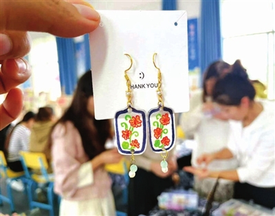 该校老师余子丽表示,看着自己亲手制作出来的国风式耳环,高兴之余特别有成就感。
