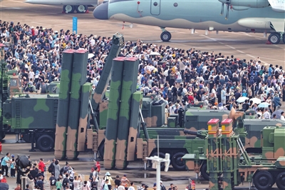 此外,防御性装备也日益呈现出远程化特征。此次航展,空军首次展出了红-19地空导弹武器系统,这个系统主要用于对弹道导弹类目标实施区域拦截,是我国国土防空反导作战的骨干装备。“区域拦截,是该系统的重要特征,意味着该系统的反导射程更远,可以和红-9等防空系统形成多层拦截网,打造更过硬的防空铁拳、更可靠的反导坚盾。”张学峰说。