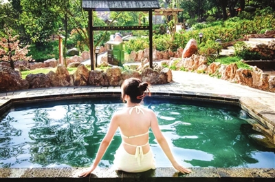 温泉池边,亭台为伴,楚天瑶池温泉度假村内拥有十大类40多个功能各异的特色温泉池,在雅致幽静的环境里听啁啾鸟语,观层峦远山,赏心又悦目。