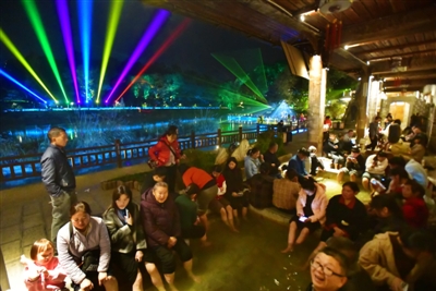近期,随着气温下降,来濯足廊泡脚的人也多了起来。“一边泡着温泉,一边赏着灯光秀,太惬意了!”不少市民和游客纷纷感叹。