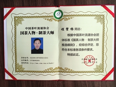 在本届大会上,中国茶叶流通协会为获得第八批“国茶人物·制茶大师”荣誉的从业者颁发了证书,并公布第九批“国茶人物·制茶大师”名单,程繁杨为第八批“国茶人物·制茶大师”。