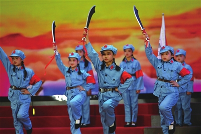 展演现场,戏曲《梨园荟萃》、黄梅戏京剧串烧《女驸马·卖水》、京剧独唱《浑身是胆雄赳赳》、京剧红色经典联唱《绣红旗》等经典剧目轮番上演,扮相靓丽的戏曲小达人们一丝不苟又略显稚气的舞蹈动作,奶声奶气又抑扬顿挫的童音赢得了全场热烈的掌声。