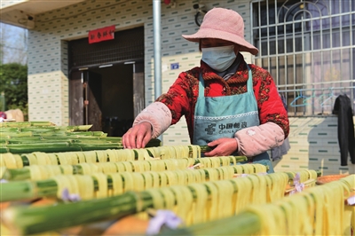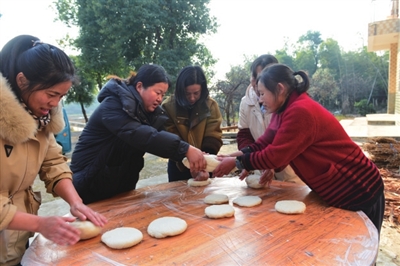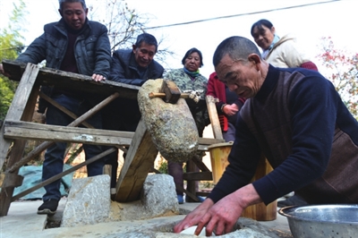 当日,在该镇各村湾,村民们三五成群,有的围在打糍粑的石臼旁,用力捶打着糯米,欢声笑语中传递着彼此间的情谊;有的在灶台前忙碌着翻炒芍片,金黄色的芍片散发出诱人的香味;还有的忙着晾晒豆丝,将一片片豆丝整齐地挂在竹竿上,享受着冬日暖阳的照耀。