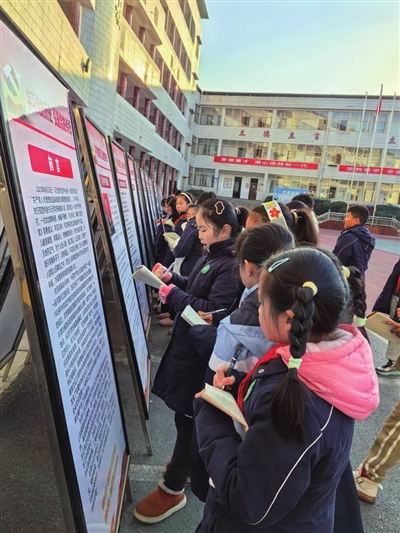操场上,一幅幅精心布置的红色文化展板一字排开,生动展示了汀泗桥战役的英勇壮烈,钱亦石、何功伟等革命先辈的抗争事迹。学生们仿佛看到了北伐军战士在枪林弹雨中奋勇冲锋;革命先烈面对敌人的威逼利诱时坚守信仰,宁死不屈。那些鲜活细节牢牢揪住师生心弦,不少同学眼眶泛红,深切体悟如今和平的来之不易。同学们目光之中满是崇敬与思索,革命先辈们的气节和坚定的共产主义信念如同一座不朽的丰碑,矗立在他们心间。