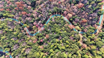 12月24日,冬日暖阳下的青龙山,宛如一幅被打翻调色盘的画卷,满山的植物被点缀得五彩斑斓,绚丽夺目。