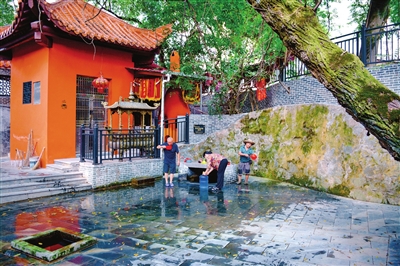 通城县隽水镇佘畈古井位于隽水大道旁,占地面积约400平方米,集古井、古庙、古墓、古树于一体。一口主井,两口副井,呈品字形。据悉,该井始建于明朝,至少有500年历史。井旁建有一座龙王庙,香火极旺。井旁有一座明万历年修建的古墓。井旁有四棵古藤,树龄超百年。井水一年四季长流不息,不减不溢,冬暖夏凉,甘甜可口。此处文化底蕴深厚,承载着老城记忆。