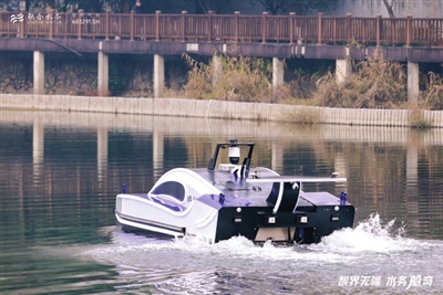 联合水务集团水环境事业部总经理郭荣荣介绍研发产品。联合水务长期致力于水务科技创新,在水环境智慧管理机器人研发过程中,深入分析水环境管理的需求,专注于水环境领域的数据积累与分析,完善水质诊断与预警,进而形成数据模型,智能指导水环境的修复与运维工作。这款水环境智慧管理机器人采用新能源无人船为载体,融合了先进的水环境智慧管理系统,集“全域监测、无人运维、排口溯源、智能安防”多功能于一体,八大作业模块按需定制,手机、电脑多端适配,可实现足不出户、一键设定、管理无忧。