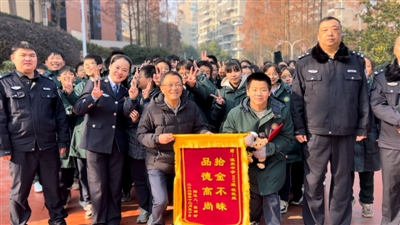 本报讯(记者 陈婧)“程戴威,太帅了!”“你是我们的偶像……”2024年12月31日上午10时,在咸宁市温泉中学,恰逢课间操时间,来自咸宁市公安局温泉分局三号桥派出所的民警将“拾金不昧好少年”荣誉证书递交至707班学生程戴威的手中,赢得了同学们阵阵掌声与称赞声。