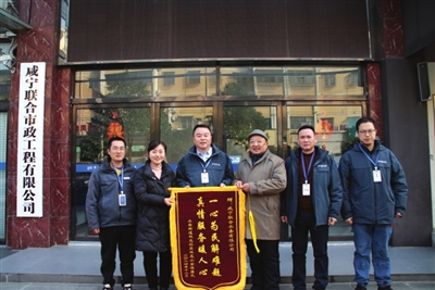 “感谢你们联合水务,真心实意为民办实事,帮我们解决了用水难题,今后再也不用为‘水压’问题困扰了。”握着咸宁联合市政工程有限公司总经理陈博的双手,永安街道双龙社区居民代表夏康顺、社区书记刘婷的感激之情溢于言表。12月31日,咸宁联合水务收到了一面印有“一心为民解难题,真情服务暖人心”的锦旗,该锦旗由永安街道双龙社区双龙山全体居民赠与,以此表达对咸宁联合水务有限公司、咸宁联合市政工程有限公司积极践行社会责任、一心为民服务的担当与情怀表示由衷的感谢。