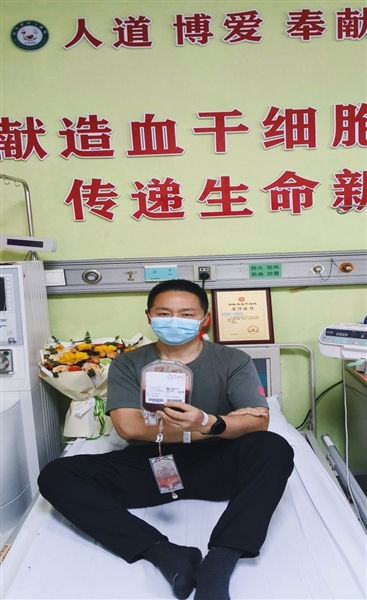捐献当天,李刚躺在病床上,左右手臂都接着管子,采集出的血液经过血细胞分离机分离出造血干细胞混悬液。经过长达4个多小时的采集分离,他终于成功完成了捐献。